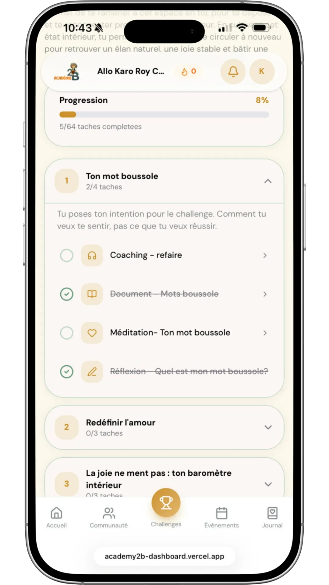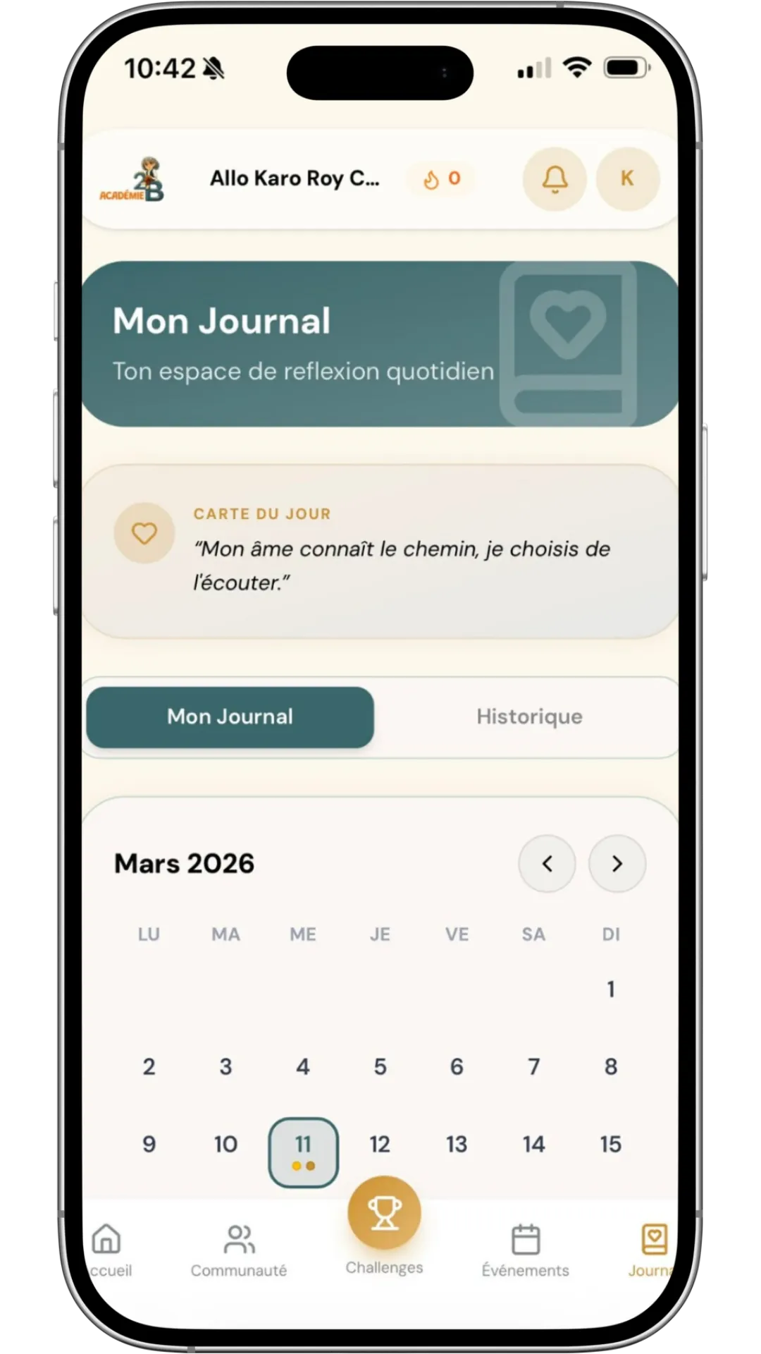 Une application qui t'aide à développer plus de conscience, transformer tes habitudes et créer la vie que tu veux vraiment grâce à une pratique simple et régulière.