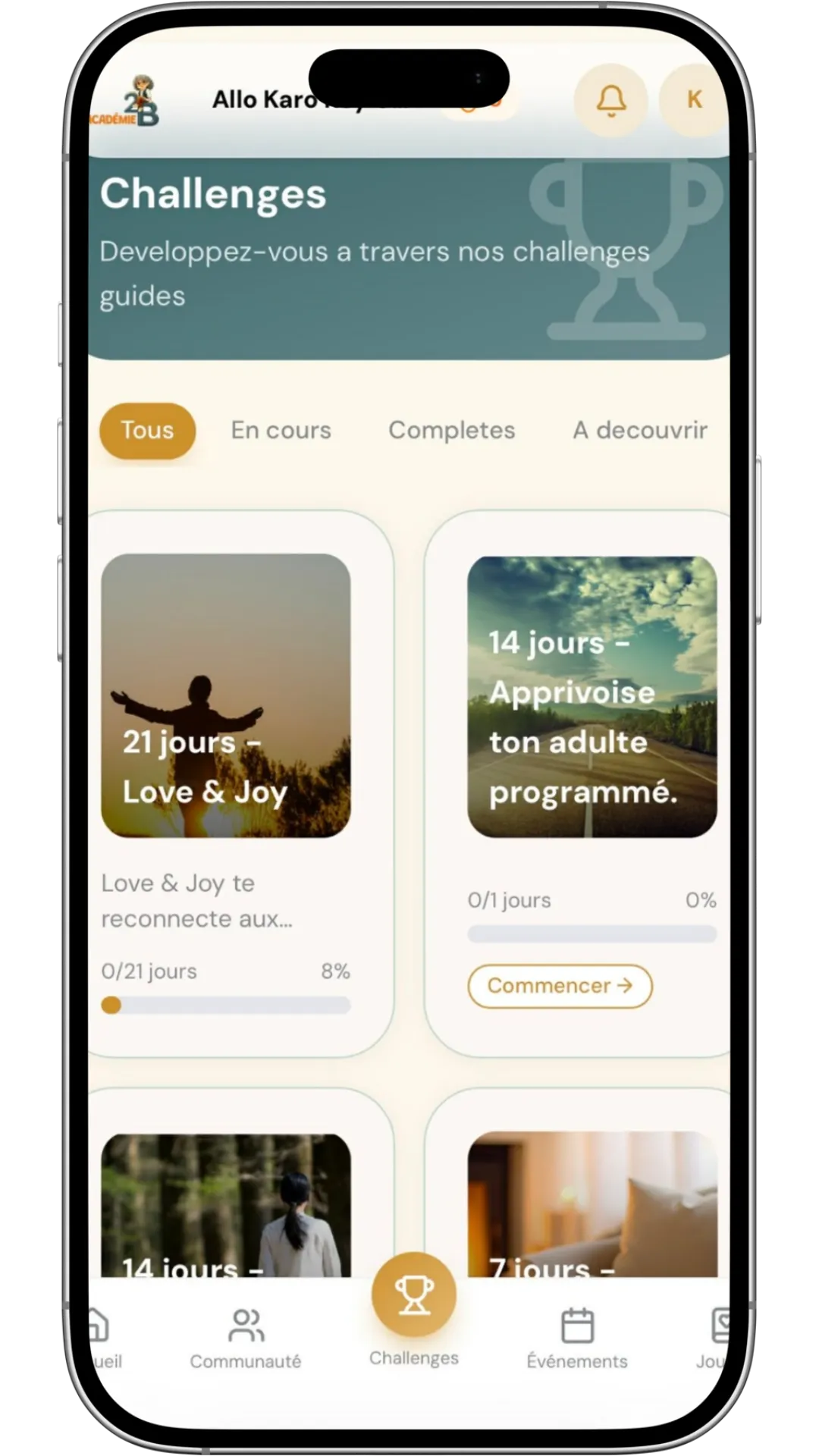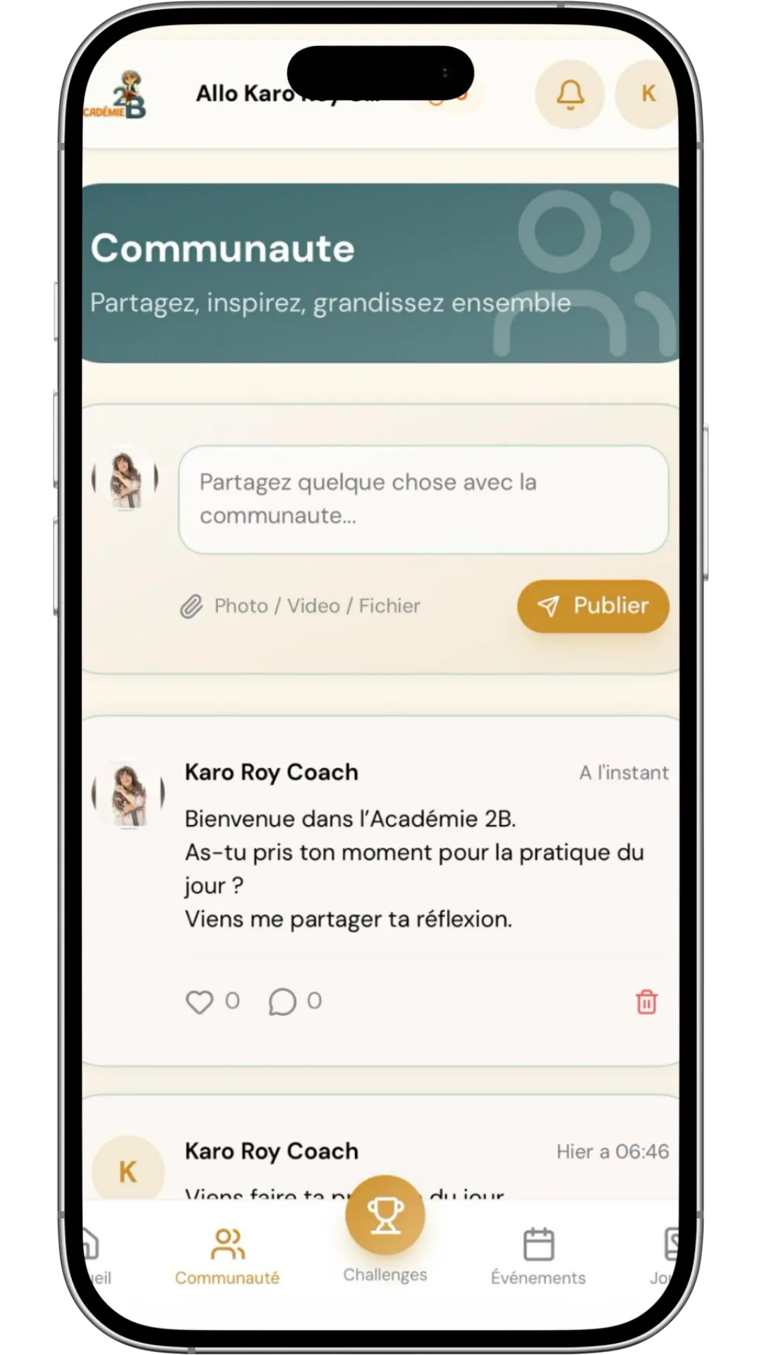 Dans l’Académie 2B, tu as aussi accès à un espace communauté.